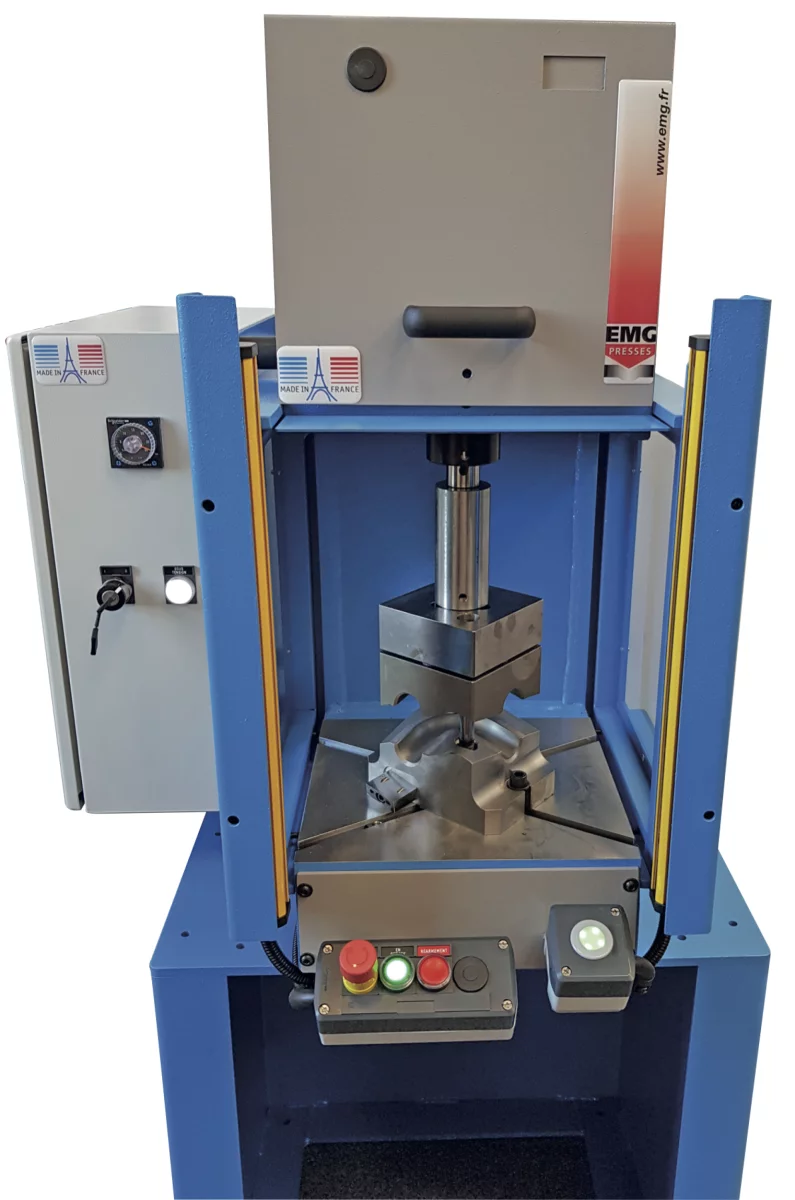 Gracias a su oficina de diseño y a una flota de más de 40 máquinas mecanizadoras, EMG estudia y realiza bajo petición cualquier modificación o fabricación de prensas especiales, así como de utillajes y herramientas para pequeñas prensas.